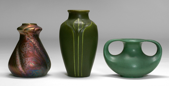 matt green finish, paper Tico pottery label exc 5 1/2" ht.