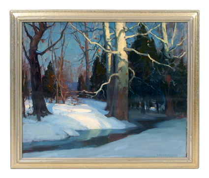 "Woodland Stream" o/c, original frame exc 30" x 36"