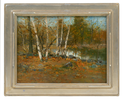 "The Birches Woodstock" oil on canvas board, orig. frame exc 12" x 16"