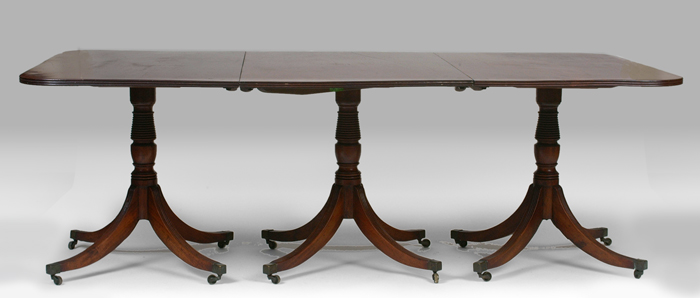 figured mahogany top w/reeded edge and leg, old patina vg 29" ht. 7'1" length 47"d