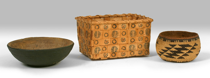 American turned rim, orig. green surface vg 2" ht. 6 1/2" w
