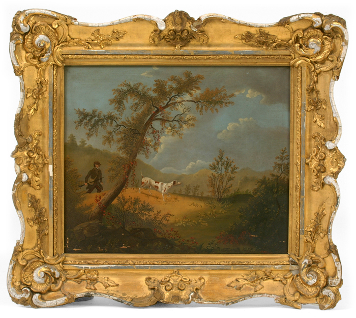 mid 19th century period frame, some gilding loss, canvas marked "Prepared by WF Cheny, Canandaigua, NY" vg 15" x 18"