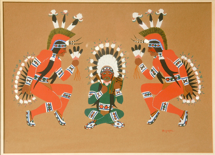 3 Indian dancers, sgn. Mopopc exc 10" ht. 14" w