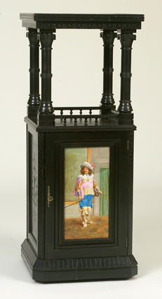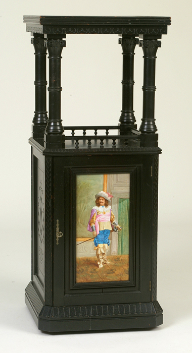 Ebonized Cherry Pedestal Music Cabinet w/Hand Painted Porcelain Plaque