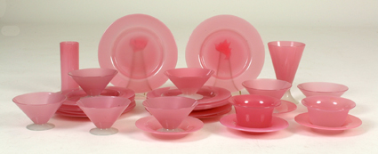 Group of Steuben Rosaline Glass 36 Pieces