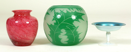 cased acid etched glass, leaf pattern exc 7'' ht. 7 1/2'' diam.