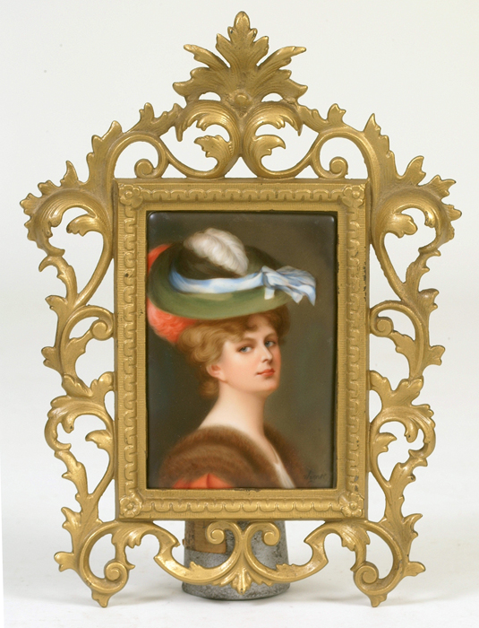 signed Wagner, painting on porcelain exc 5 1/2'' ht. 4'' w