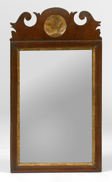 mahogany w/ gilt decoration, minor old repairs, old patina & mirror vg 17'' ht. 9 1/2'' w