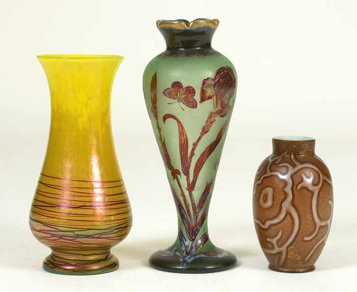 iris & butterfly pattern, signed Vallerthal exc 13'' ht. 4 3/4'' diam