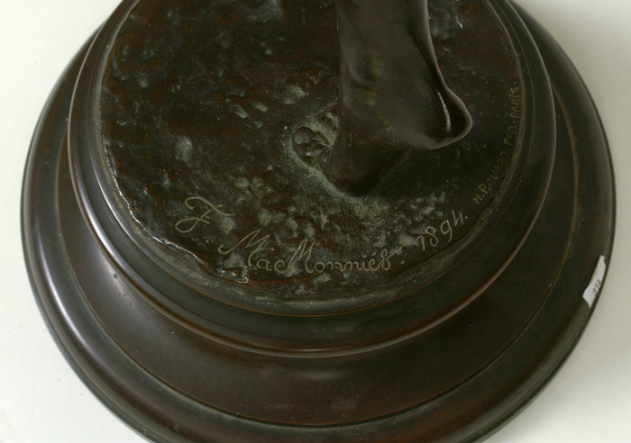 cast bronze, original dark brown patina with some loss, otherwise vg. Foundry mark "H Rouard Foundry Paris" vg 33 1/2"ht.