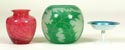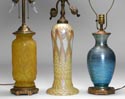 Steuben Jade Twist, Oriental Poppy, & Acid Cut Back Lamp Bases