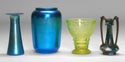 Blue Art Glass Vase, Engraved Vaseline Glass Vase, etc.
