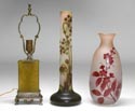 Loetz Silver Overlay Vase, Sgn. Galle Cameo Vase, & Sgn. Devez