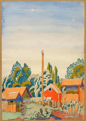 watercolor and graphite, "Waning Moon" vg 19 1/2"x13 1/2"