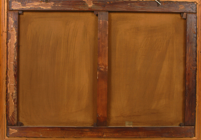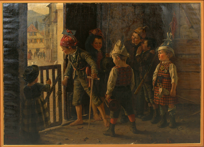 o/c, "The Storming of the Fort", minor paint loss on edges and crackular. vg 36"x49"