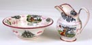 Sailor's Farewell Pink Luster Pitcher Bowl Set w/ Polychromed Decoration