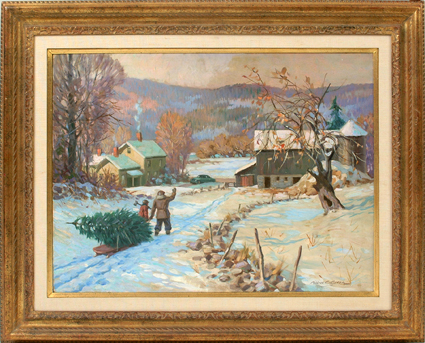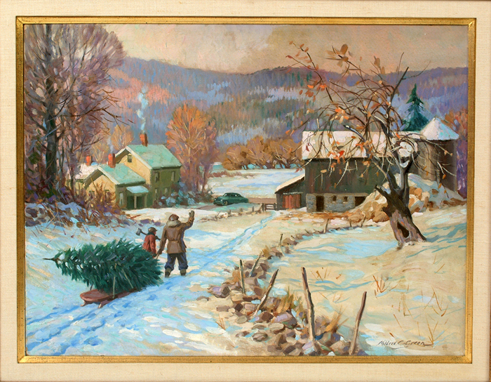 Signed Mildred Green O/B "Bringing in the Christmas Tree" Boston Hills NY