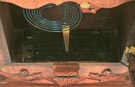 Seth Thomas Violin Clock- Walnut case w/carved trim, nice original surface, old patina. Label & stenciled glass are all original and in very good condition, sgn. 8 day t/s, brass lyre movement w/Geneva stops.
