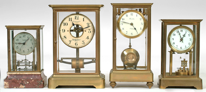 Brass case w/glass panels in original patina. 400 day disc pendulum.