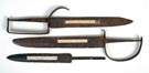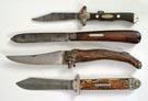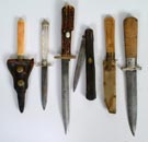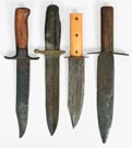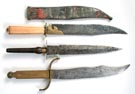 Knives: Many Bowie knives, ivory & staghandled, primitive, sideknives- cut down swords, folding knives,