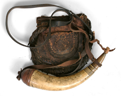 1822 Powder Horn & Fringed Leather Hunting Bag-