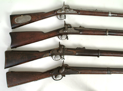 P-1853, London Armoury. Pitted overall. Copper inserts in wrist at trigger guard strap. Repro ramrod.