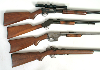 Winchester Rifle- Model M-61, .22 S,L,LR with Bushnell 4X scope. Ranger Rifle- .22 caliber Savage Arms Rifle- .22 caliber Winchester Bolt-Action Rifle- M-64, .22 caliber