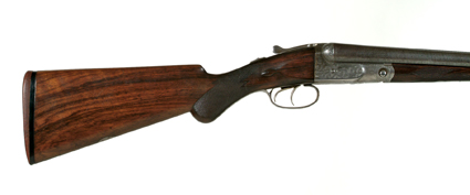 Parker Double Barrel Shotgun- Engraved w/hunting dog & pheasants. Damascus steel, #177251 w/ original carrying case.