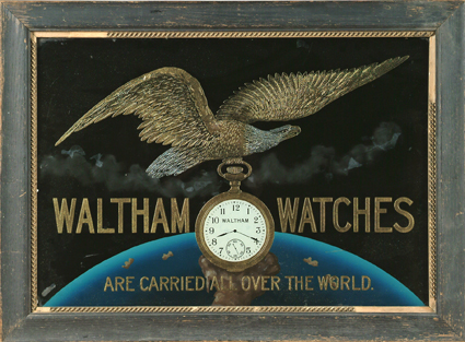Reverse Painted Waltham Watch Advertising-