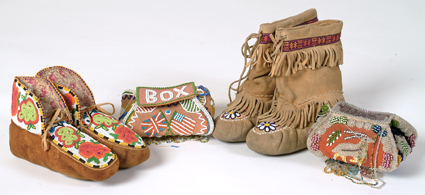 Large Beaded Moccasins- Leather w/beaded design, cloth band Small Beaded Moccasins- Minor bead loss around upper edge