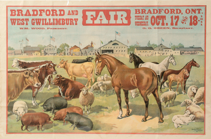 Bradford Ontario 1911 County Fair Poster- Marked #2822 Donaldson Litho Co. creases on folds, sm.edge tears