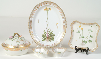 Royal Copenhagen Flora Dansk Porcelain Serving Pieces- Serving plate, platter, covered dish, 2 sm. serving pieces 2 Royal Copenhagen Flora Dansk- 2 serving dishes