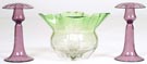 Steuben Candlesticks & Grotesque Bowl |