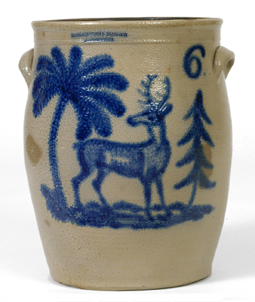 Harrington & Burger 6 Gal Cream Pot w/ Deer Rare 6 Gal. Cream Pot by Harrington & Burger, Rochester, NY w/ Deer