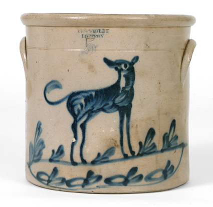 West Troy NY Potteries Crock w/ Blue Dog