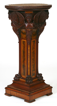 Carved & inlaid burl, winged figures w/paw feet, original condition