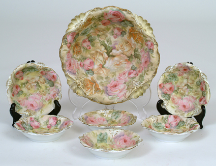 Large bowl & 6 small bowls, chip under rim of 1 small bowl