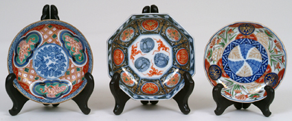 2 Imari, 1 Chinese, marked on bottom, blue underglaze, polychrome decoration