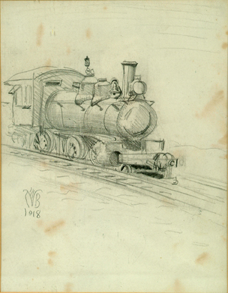 Sgn. Charles Burchfield 1918 Pencil Sketch "Locomotive" Minor foxing, Provenance: Burchfield Center, Buffalo State University