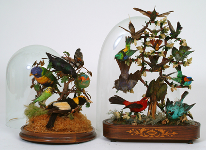 L-Victorian Domed Wardian Case Display - Walnut base, all original R- Victorian Domed Wardian Case Display - Rosewood base w inlay, original condition