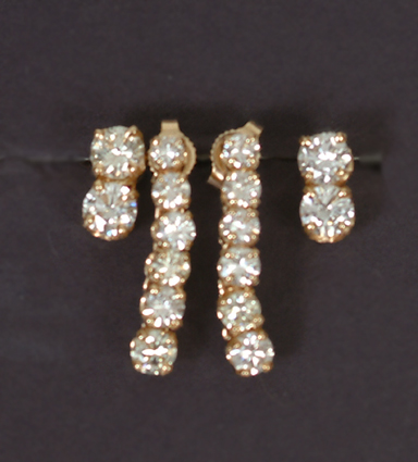 Pair of graduated diamond drop earrings prong set in 14K yellow gold w/posts & friction backs. There are 12 diamonds, ranging in size from 2.85mm to 3.70mm each. Approx. weight ranges from 0.08 carats each to 0.18 carats. Est. total weight is 1.50 ct. Clarity range is SI-1 to SI-2. Color range is H-I-J (GIA) Provenance: Private Buffalo NY estate
