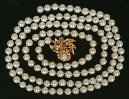 Strand of 126 Pearls w/Sapphire Clasp