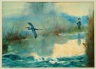Sgn. Roy Mason (1886-1972) Watercolor, Heron & Fisherman 21" x 29" |