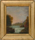 Primitive Waterfall NY State Painting Ht. 11 1/2" W 9 1/2"