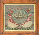 Lot #265: 19th Cent Woolwork Ship Portrait - Original maple frame. Excellent condition. 11" x 12"