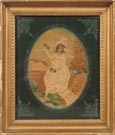 Lot #266: Early 19th Century Needlework on silk - Woman sitting. Very good overall. 9" x 6 1/2