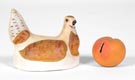 Lot #274: 19th Century Pa. Chalkware Hen Bank - Original mustard red paint decoration. Private collection, Rochester, NY. Purchased 40 years ago. Excellent. Ht. 7" W 8 1/2" D 6"