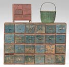 Lot #338: Red & Blue Pine Apothecary - Good old surface, overall good condition. Ht. 28" W 41" D 10"