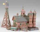 Lot #279: 1949 Folkart Barn - Painted w/many accessories. Barn: Ht. 30" W 18" D 28", Windmill Ht. 38"