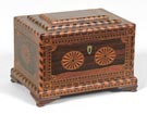 Lot #199: Inlaid Box - Maple, rosewood, walnut & ebony. Excellent original condition, old finish. 9" x 12 1/2"